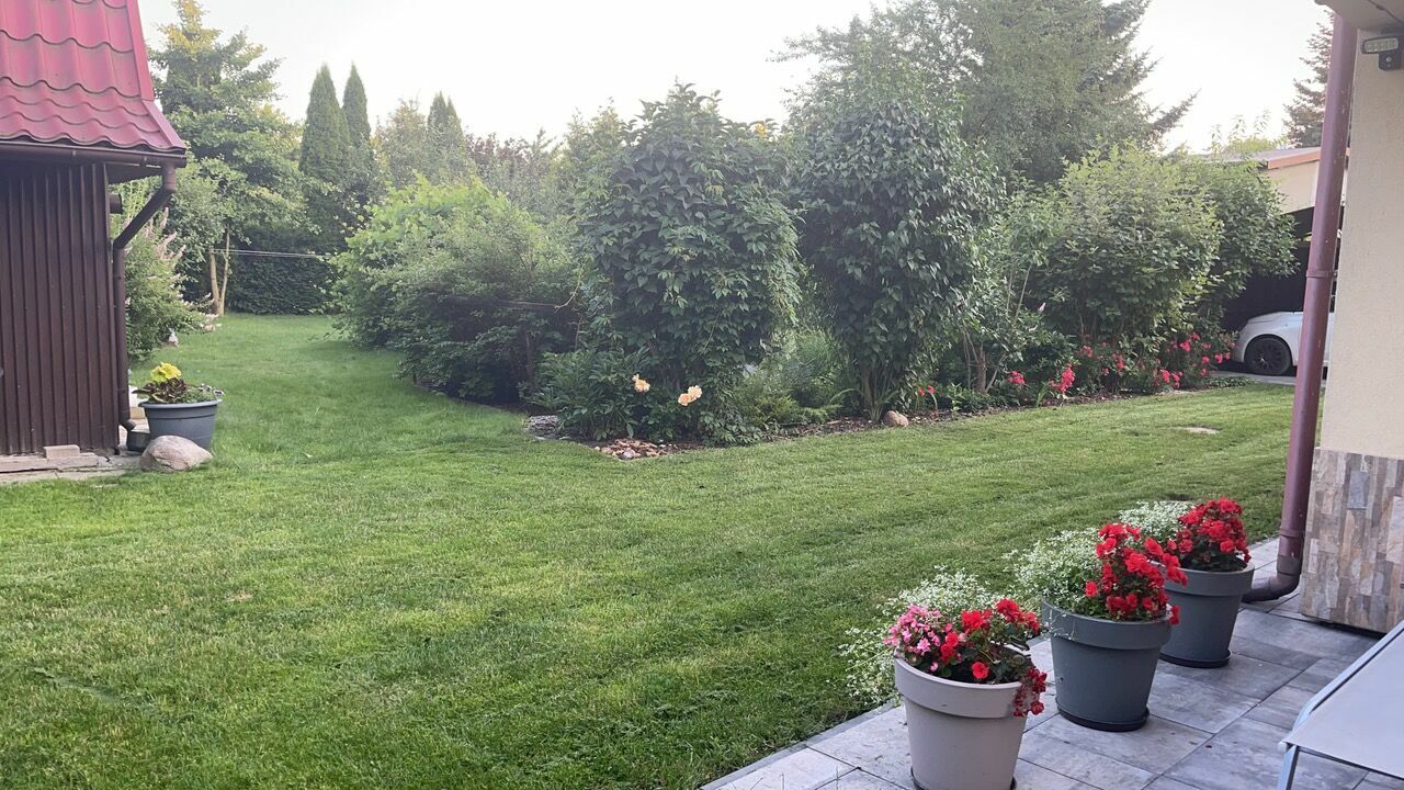 Nieruchomość znajduje się na dużej i w pełni zagospodarowanej działce budowlanej o powierzchni 13,5 ar, z pięknym ogrodem i komfortową infrastrukturą towarzyszącą.